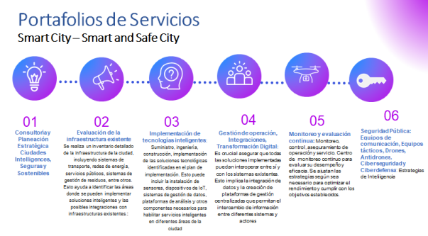 Ecosistema digital IoT Ciudad Inteligente: Implementación de soluciones Agnósticas Smart City and Smart Industry, para gestión de tráfico, iluminación pública, seguridad ciudadana, sensores de medición variables gestión ciudad o industria, movilidad, gestión de residuos, puntos de control de monitoreo y eficiencia energética, con Inteligencia Accionable –IA- Transformamos objetos cotidianos en dispositivos inteligentes: Inteligencia Artificial (AI): Automatizamos y optimizamos procesos para mejorar la eficiencia.Realidad Virtual y Aumentada (VR/AR): Creamos experiencias inmersivas y enriquecidas. ISP PLUS: Redes Privadas y Conectividad 5g: Voz, Datos, IoT: Conectividad sin límites: Proporcionar acceso a internet de alta velocidad y baja latencia en todo LATAM, con enfoque en ciudades inteligentes., integrando a Soluciones IoT, Ciberseguridad y Ciberdefensa. Plataforma de Datos Abiertos para Territorios Digitales e Inteligentes: Acceso a datos abiertos y anonimizados para investigación, innovación y desarrollo de aplicaciones´. Entre ellas: Aplicación Seguridad Ciudadana: App para conectar la comunidad con ciudades inteligentes, incluyendo reporte de incidencias, botones de pánico, servicios digitales a municipios, conexión con Centro Comando AI, entre otros. Plataforma de Ciberseguridad Integral: Soluciones de ciberseguridad 360: de objetos, redes, personas, sistemas personalizadas , para individuos, empresas y ciudades, con monitoreo 24/7 y respuesta rápida a incidentes. Analítica 3d con drones: Analítica site surveys y monitoreo para ciudades, industrias, telecomunicaciones, energía/oil&Gas, topografía agro, entre otros. Incentivos para Startups: Programa de aceleración y financiamiento para startups que desarrollen soluciones innovadoras en IoT, ciberseguridad y ciudades inteligentes. Centro de Operaciones de Ciberseguridad (SSOC): Monitoreo gestion y respuesta a incidentes de seguridad y Smart City en tiempo real, con equipo de expertos en ciberseguridad y tecnologías emergentes. Incluye Centro Comando Integral Ciudades Seguras y Digitales, con prediciones de comportamiento basados en AI. Experiencia del Cliente Personalizada: Servicio al cliente personalizado y multicanal, garantizando una experiencia única y satisfactoria, utilizando plataformas de Tecnologías Emergentes. |
